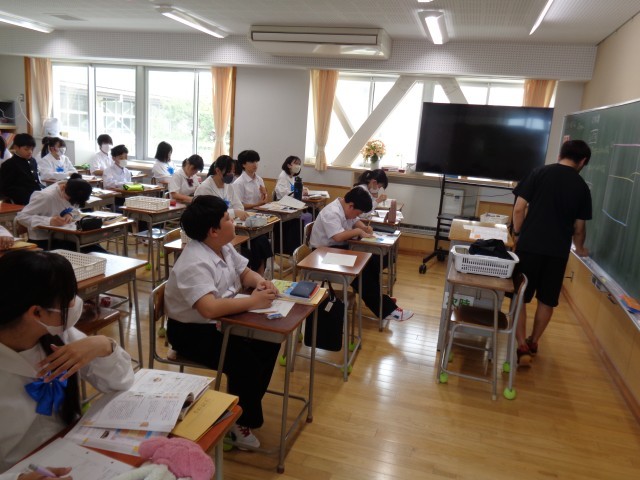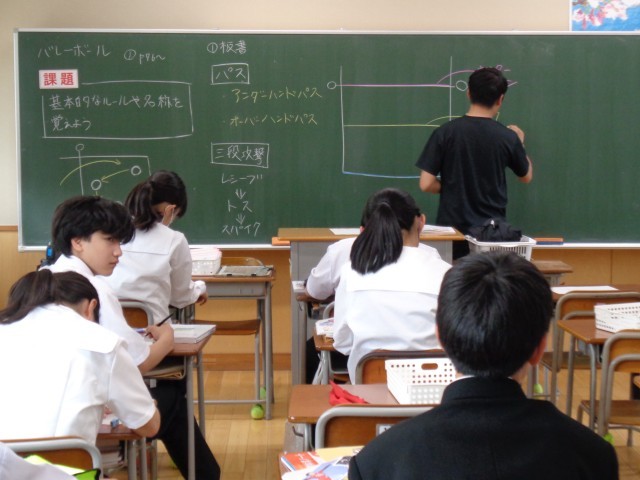 1年生の保健体育です。今日はバレーボールのルール等を学習しています。