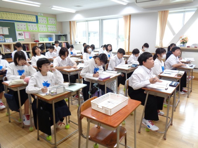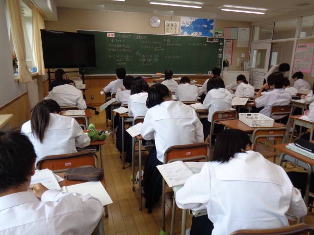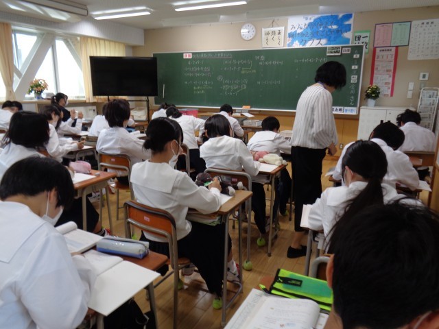 1年生の数学です。真剣に計算問題に取り組んでいます。