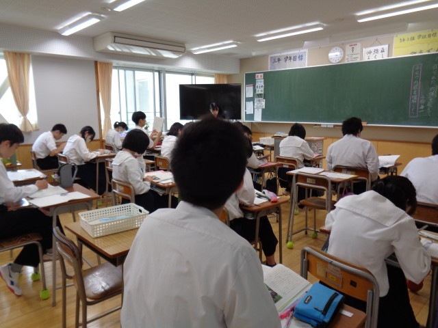 3年生の英語と国語です。どの授業も落ち着いて取り組んでいます。