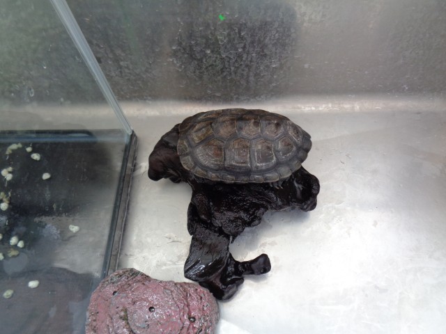 2年生の廊下には、新しい掲示がありました。カメの水槽をきれいにしていました。カメは長生きなんですよね。