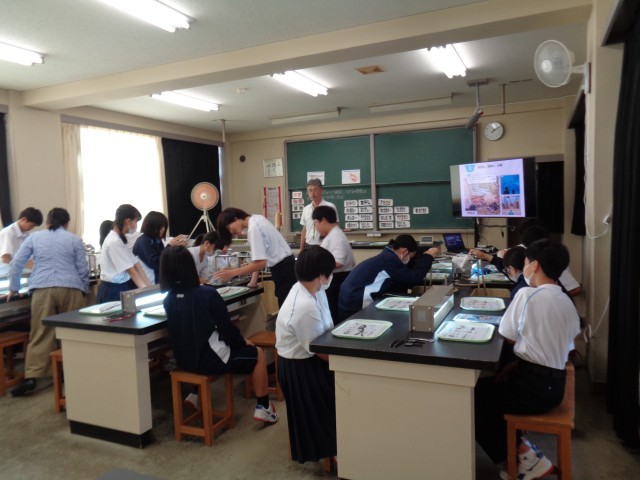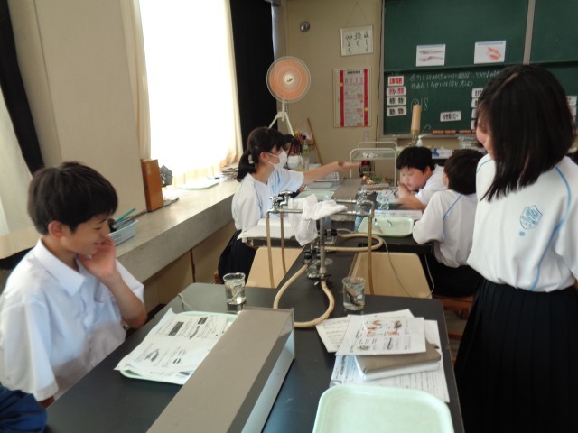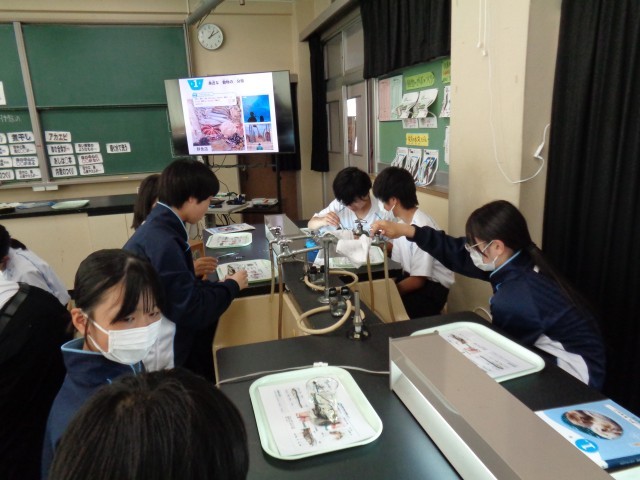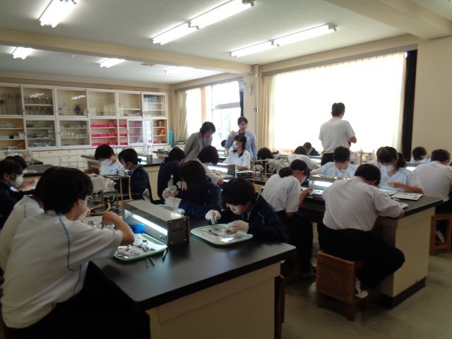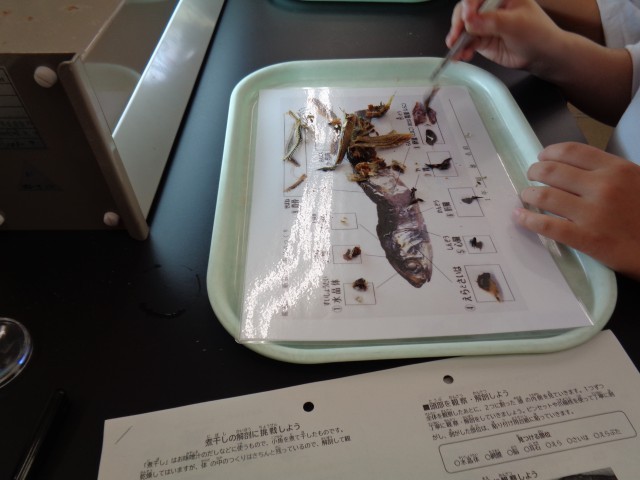 1年生の理科です。煮干しを使って、身体のつくりを観察しています。