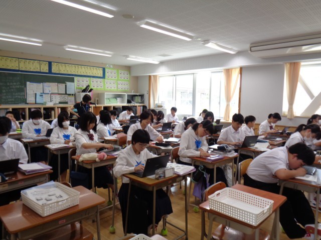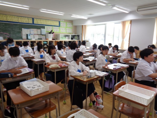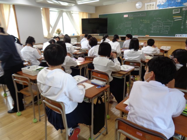 1年生の技術家庭科です。作品の図を書いています。作るのが楽しみですね。