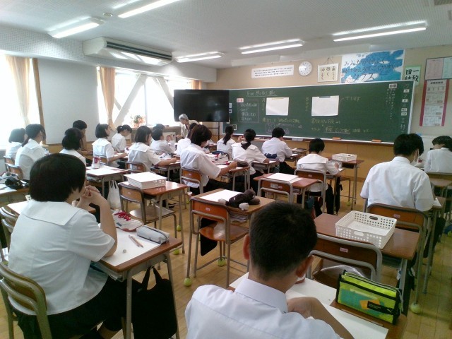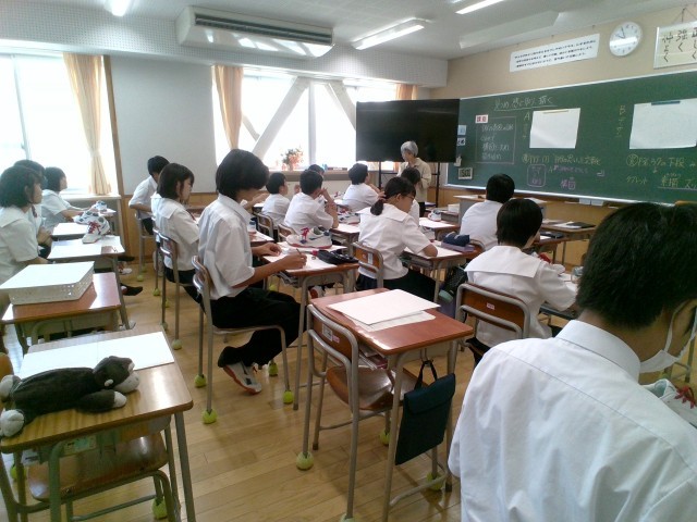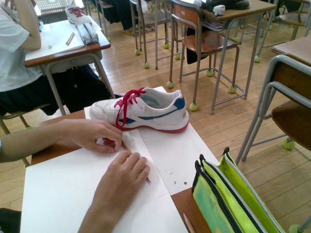 1年生の美術です。自分の上履きを書きます。書き方を学習しています。