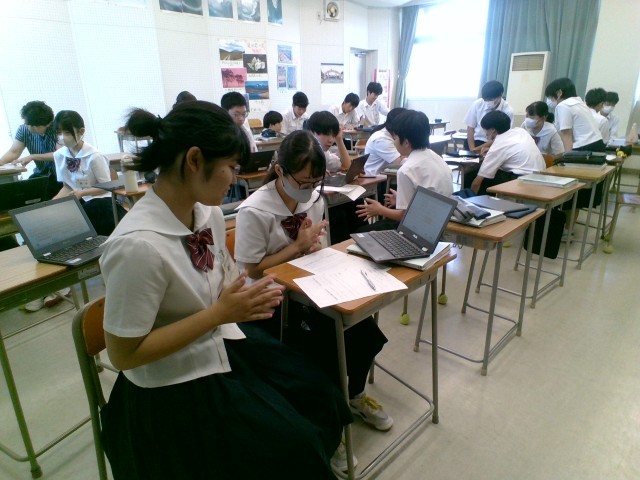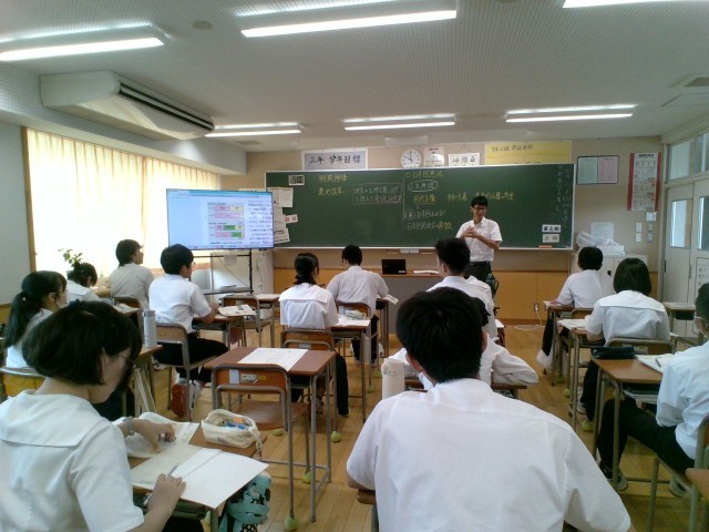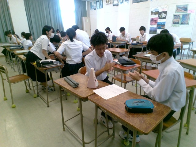3年生の音楽と社会です。音楽では、手拍子をしながらリズムを考えています。