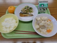 メニューは、ごはん、牛乳、いわしの梅煮、もやしのおひたし、ごまけんちん、みかんで...