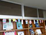 図書室前の廊下です。7月になるので、七夕の飾りになっています。 学校では、図書室...