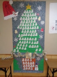 給食室前に「クリスマスに欲しいもの」の掲示がされました。たくさんの生徒や先生方の欲しいものが書かれています。作ってくれたみなさんありがとう!