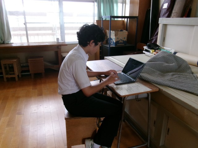 7月16日(水)給食準備(広報委員) 公開日 2025/07/16 更新日 2025/07/16 生徒の活動紹介 放送担当の委員が、準備の曲を流したり本日のトピックスネタを調べたりしていました。毎日楽しい放送をありがとうございます。