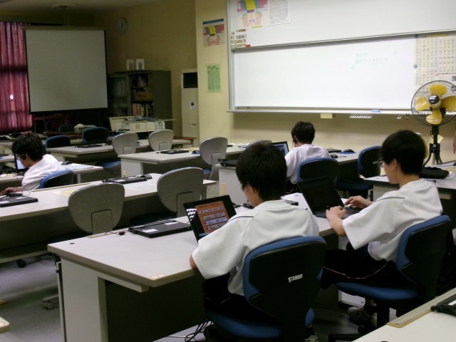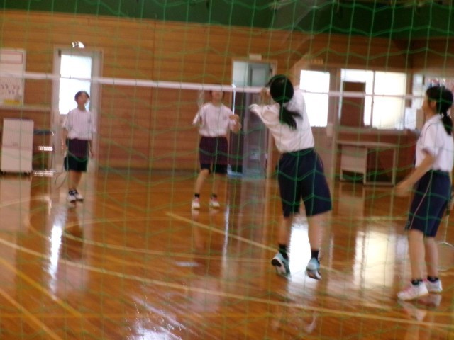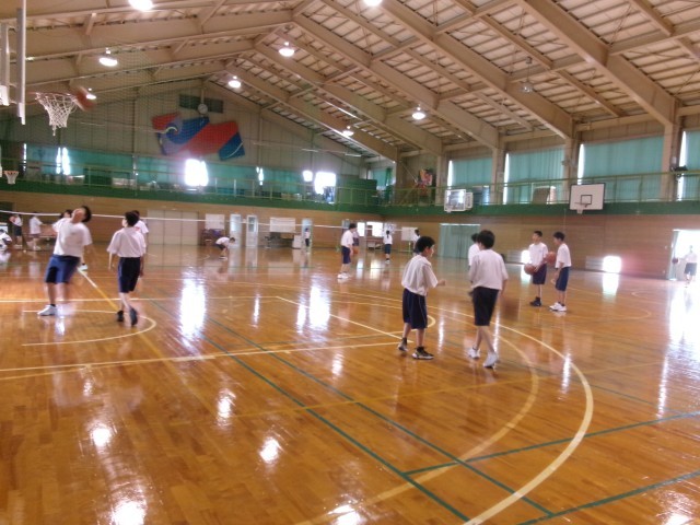 コンピュータ部、バドミントン部、バスケットボール部の様子です。体育館は、送風機を使っていますが、暑かったです。