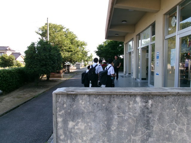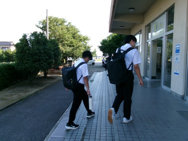 登校するだけで、汗だくです。水分補給をしてくださいね!