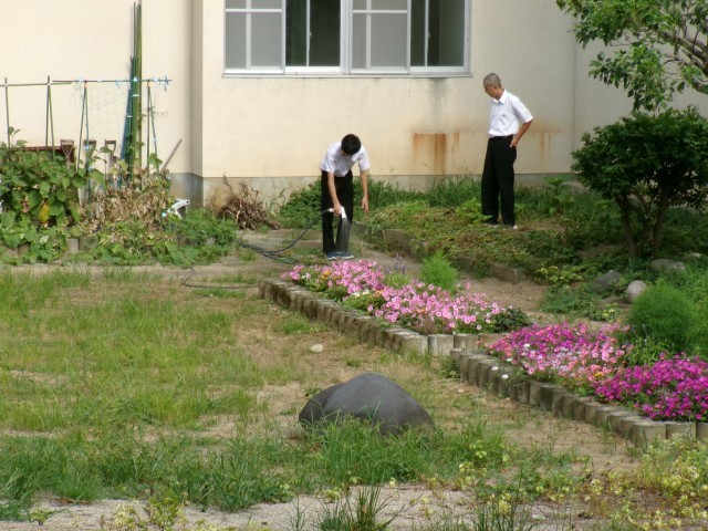 7月24日(木)中庭の様子 公開日 2025/07/24 更新日 2025/07/24 月中日誌 今日も水やり、ありがとう。毎日お世話をしてくれました。「続ける」ことが、とても立派です。この姿にも感動と感謝の気持ちです。ありがとう。
