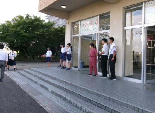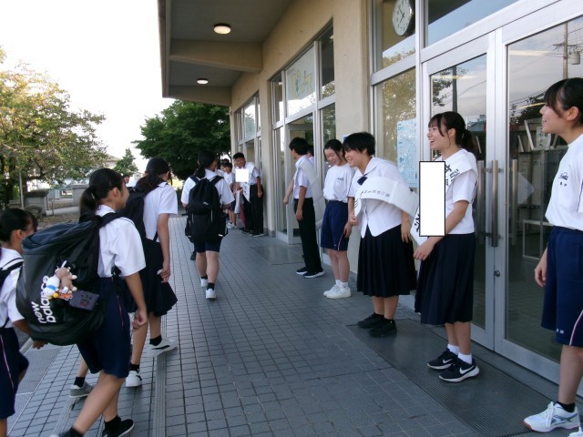 生徒会役員選挙に向けた選挙活動の様子です。活気ある玄関で、気持のよい朝です。
