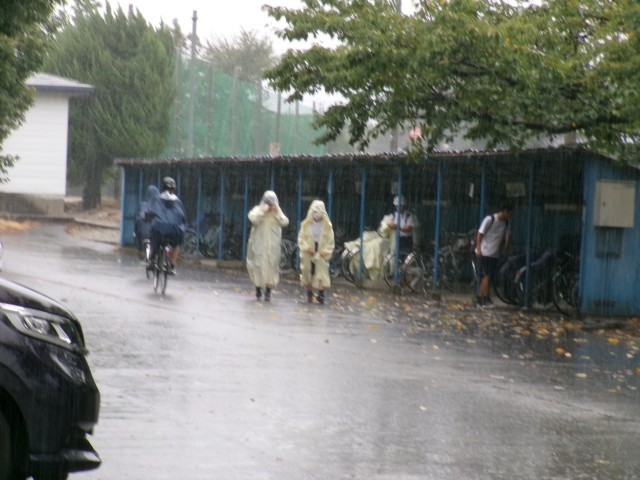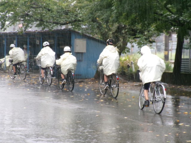 ちょうど雨の降り方が激しくなったときでした。自転車通学生にとって、雨の日は大変です。