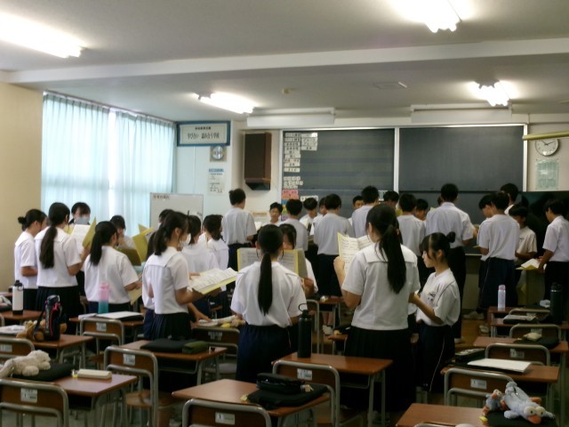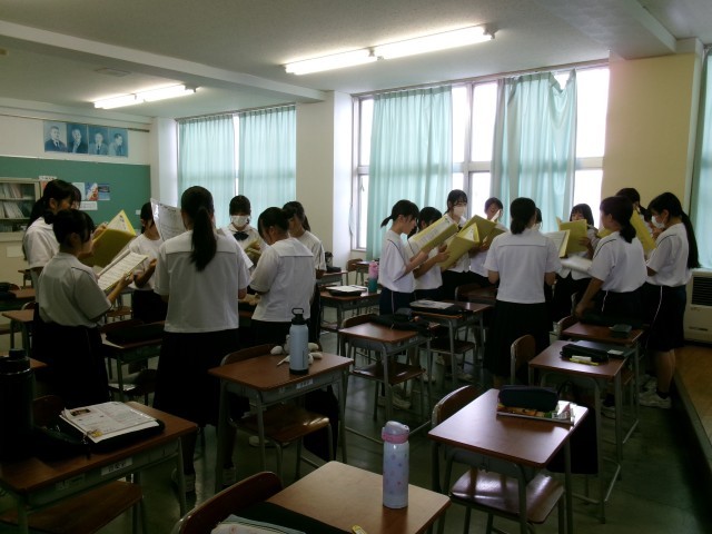音楽の授業の様子です。音楽室から階段まで素敵な歌声が響いていました。歌っている表情もとてもよく心が温かくなりました。学習発表会が楽しみです。