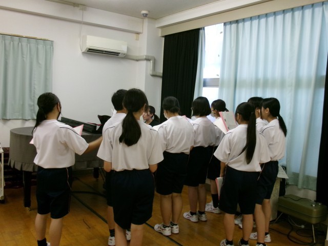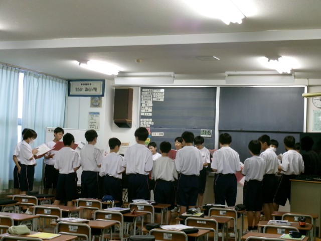音楽の授業の様子です。各パートで音階を確かめていました。さすが中学生!自分たちのクラスの合唱曲を自分たちでつくりあげようと、リーダーを中心にまとまって練習しています。学習発表会まで、どんな風に仕上がるのか楽しみです。