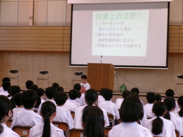 選挙管理委員が演説会の運営を行いました。とてもスムーズでした。