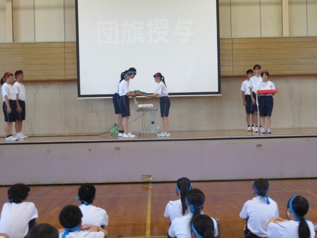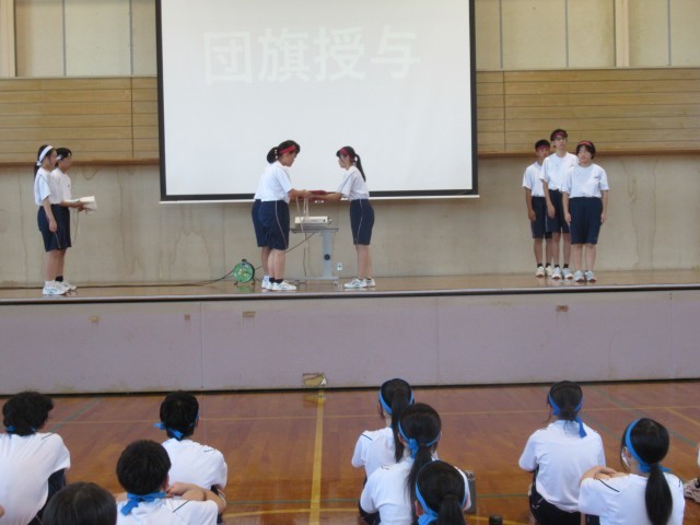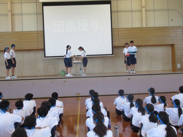 実行委員長から団長へ団旗を授与しました。団長たちは、さらに責任感をもったことでしょう。これから、よろしくお願いします!