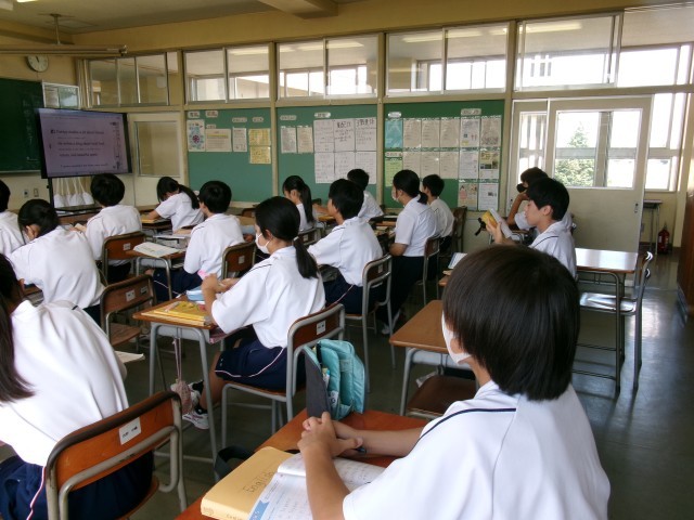 1年生の英語の授業の様子です。「can」が文章に出てきていました。「can」があると動詞に「s」がつきません・・・。この前は、動詞に「s」がつく学習をしたばっかりなのに・・・。と、心の声が聞こえそうです。