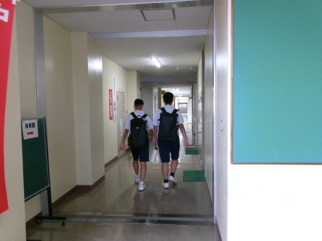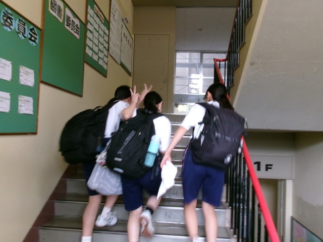 登校し、教室に向かう姿です。後ろ姿ですが、「ピース」で答えてくれてほんわかします。頑張る源になります。ありがとう。