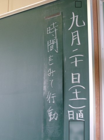 理科の授業の様子です。集中していました。毎朝、日直が今日の行動目標を黒板に記入しています。「時間をみて行動」、常に意識したいで、当たり前に時間を守る人になりたいですね。「凡事徹底」です。