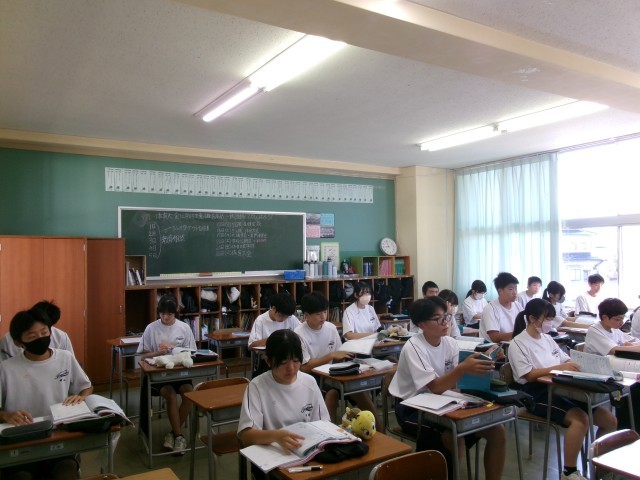 9月24日(水)授業の様子(2学年) 公開日 2025/09/24 更新日 2025/09/24 学び合い認め合う学習 2年生は、英語と理科に分かれての授業です。3連休明けの1時間目ですが、集中して取り組めているようです。