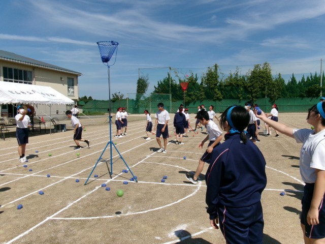 3年生の練習の様子です。私も投じてみました。「やったー!入った!」のときと、とんでもない方向にいってしまったときがありました。難しいです。入ったときに「すごい!」と言ってくれた3年生、ありがとう。