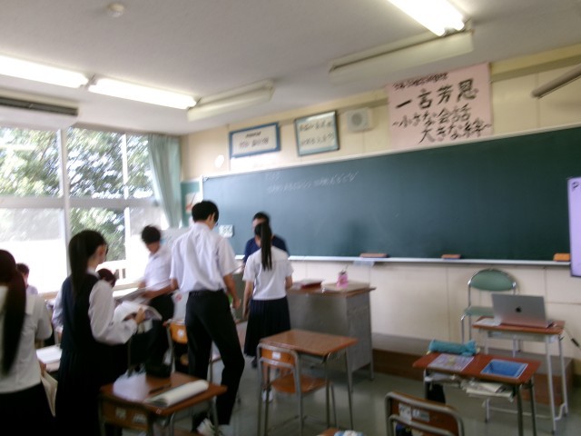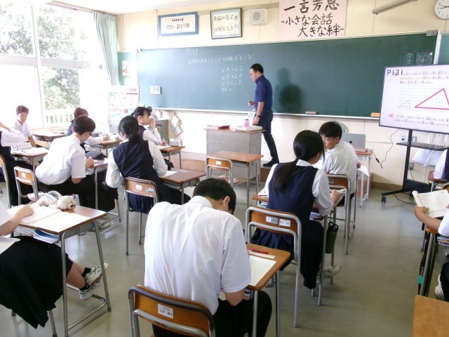 数学の授業の様子です。「相似」の学習でした。隣の人と確認したり、先生に点検してもらったり積極的に取り組んでいました。対応する角や辺、そうそう相似ってそういう条件だったなと一人で懐かしんでいました。