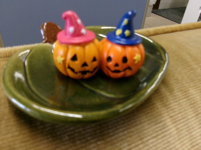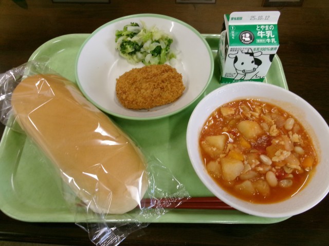 10月になると、お店等がハロウィンに向けた飾り付けをしますね。今日は、かぼちゃのコロッケのおかずだったので、かぼちゃの置物も写真に撮ってみました。いろいろなかぼちゃの置物等を校舎内に飾ってあるので、見付けてください!かぼちゃは、甘くておいしかったです。