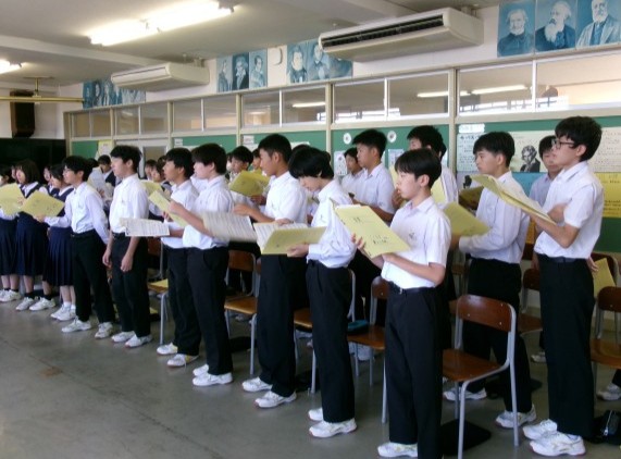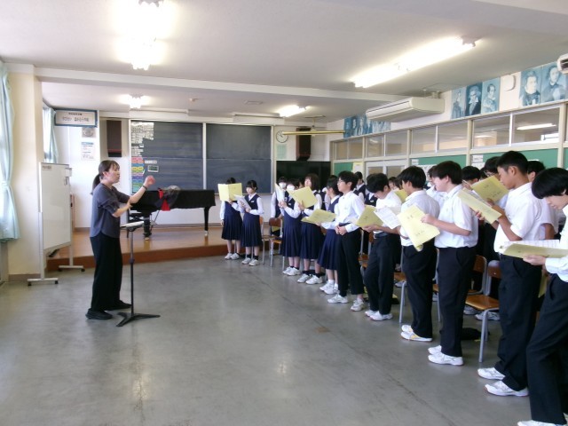 音楽の授業の様子です。歌詞の意味や、音楽記号に気を付けて歌っていました。「ここで、気持ち合わせて!」をちょっと意識するだけで、ずいぶん歌が変わっていました。