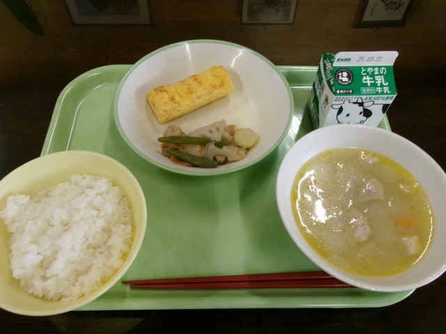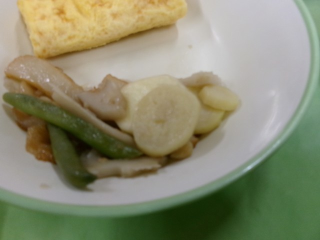 今日は、きときとランチの日です。今が旬の「まこもたけ」、今日は、れんこん等とのきんぴらでした。「まこもたけ」は、キノコの仲間なのかと思ったら、水辺で育つイネ科の植物で、2mほどの高さになるそうです。食べる部分は茎の根本30cmだそうです。シャキシャキして、美味しくいただきました。ちなみに、食物繊維が豊富なんだそうです。