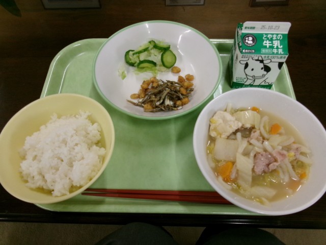 10月16日(木)今日の給食 公開日 2025/10/16 更新日 2025/10/16 今日の給食 鍋料理が恋しい季節になってきました。はくさいなべは、白菜がくたくたになって、甘みも増して最高です。小魚やお豆はよく噛んで食べましょう。今日も美味しくいただきました!<今日の献立>ごはん牛乳小魚入りフライビーンズきざみ和えはくさいなべ