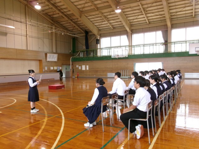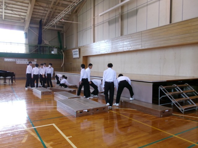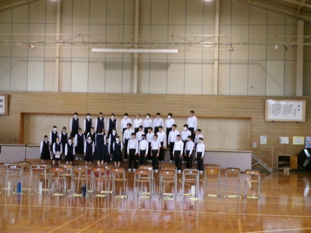 2年生のリハーサルの様子です。会場準備から始め、実行委員がリードして練習を行いました。立ち位置、入退場の仕方等の合唱前後の動きも確認しました。ステージに立つと緊張感が増しているようでした。