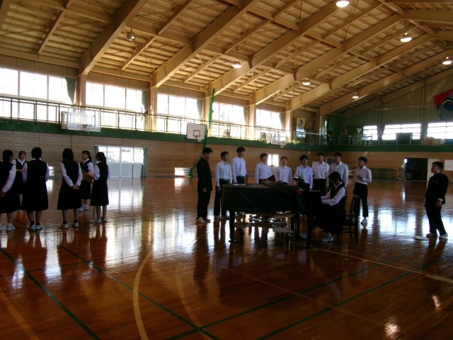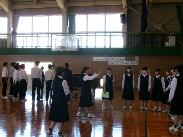 いよいよ明日はステージでの発表です。各クラス、リーダーが中心になり、全員で、伸ばすところ、強弱、息継ぎ等を確認していました。
