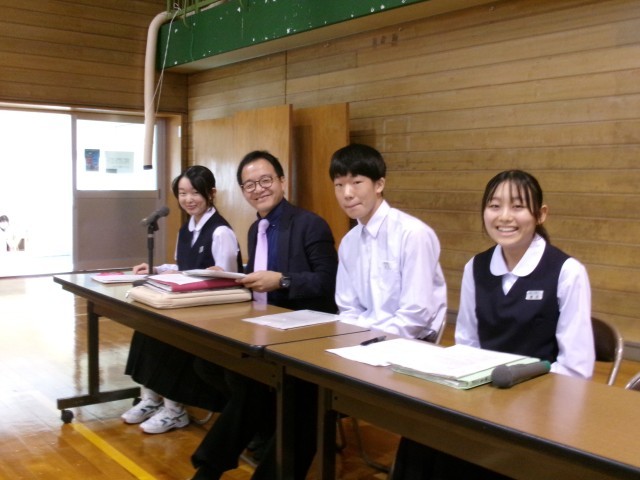 10月24日(金)学習発表会 開会式 公開日 2025/10/24 更新日 2025/10/24 生徒の活動紹介 開会式前に、実行委員をパチリ!この後、開会式になりました。生徒会長挨拶、全員で校歌を歌いました。