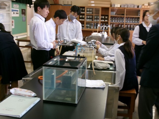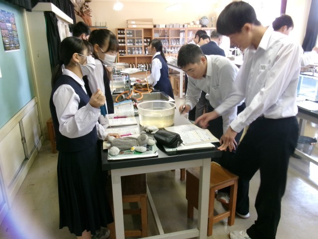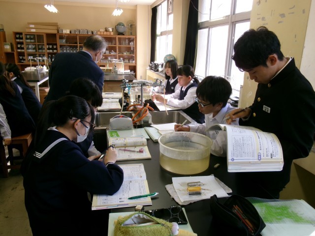 理科の実験の様子です。何と何を比べるのか、何を変えて実験したらよいのか互いに聞いたり考えたりして行っていました。成功したでしょうか。結果が気になります。