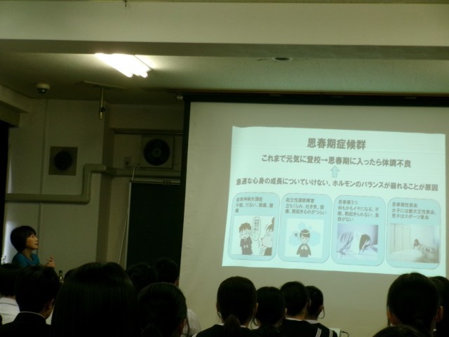 吉本レディースクリニック院長吉本裕子先生を講師としてお招きし、講演会を行いました。大人と子供のはざまの思春期にある中学生の心や体の変化、男女の違い(互いのよいところ)、思春期における性トラブル等をスライドを使って具体的に分かりやすく教えていただきました。自分や周りの人の命や生活を守るための知識と判断力を身に付けることができました。吉本先生、ありがとうございました。