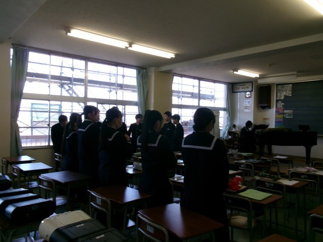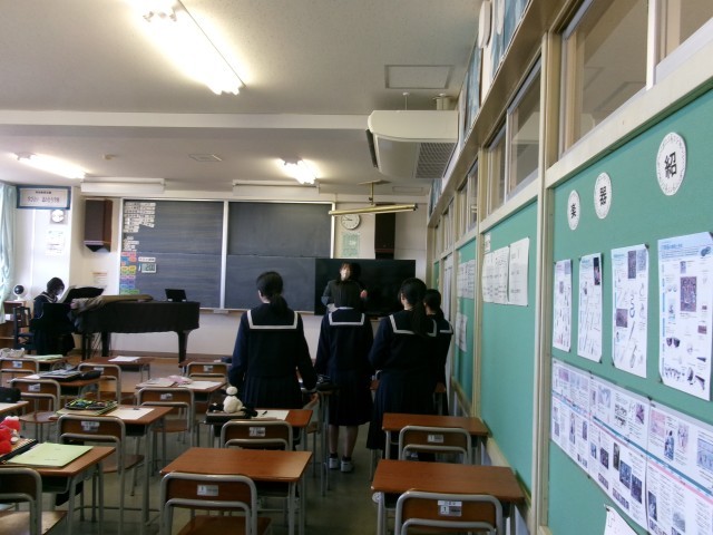 歌声につられて、授業中の音楽室をのぞいてみました。各パートで音を確認しながら合唱しているところでした。この後、歌唱テストをしました。
