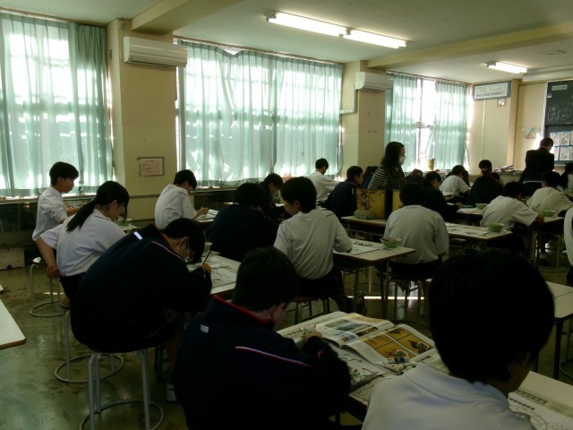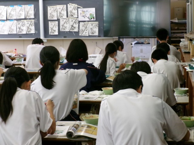 美術の授業の様子です。黙々と集中して着色作業に取り組んでいます。