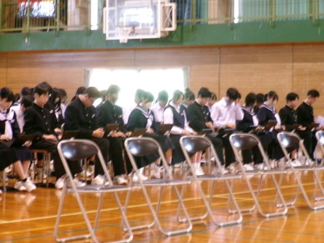 5・6限に生徒総会を行いました。行事等があり限られた時間で準備し本日を迎えた生徒会執行部や専門委員長、学年代表たちです。堂々と計画を発表していました。質疑応答では、激励やさらによくなる案を加えて意見を言う生徒が多く、一人一人が自分事として考え、てとても温かい生徒総会でした。