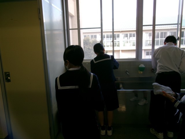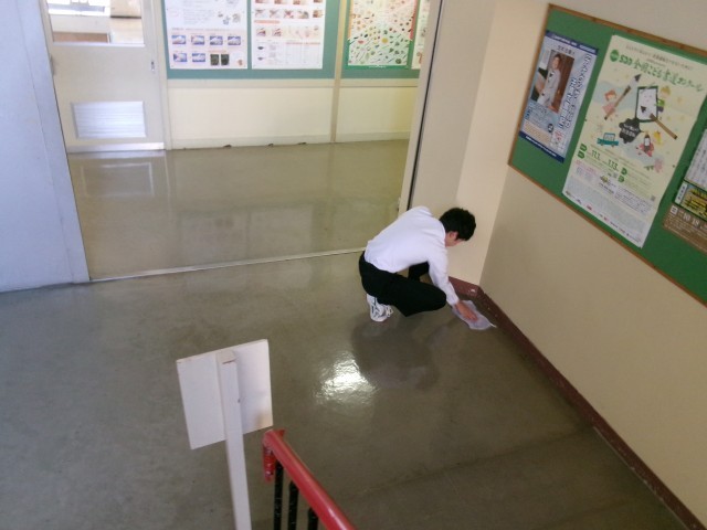 今日の清掃の様子です。雑巾がけをし、そのぞうきんを洗い最後は手洗いをして終了です。今日も丁寧に、ありがとうございました。