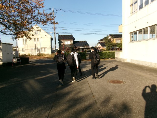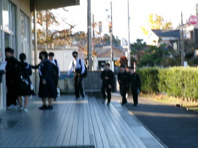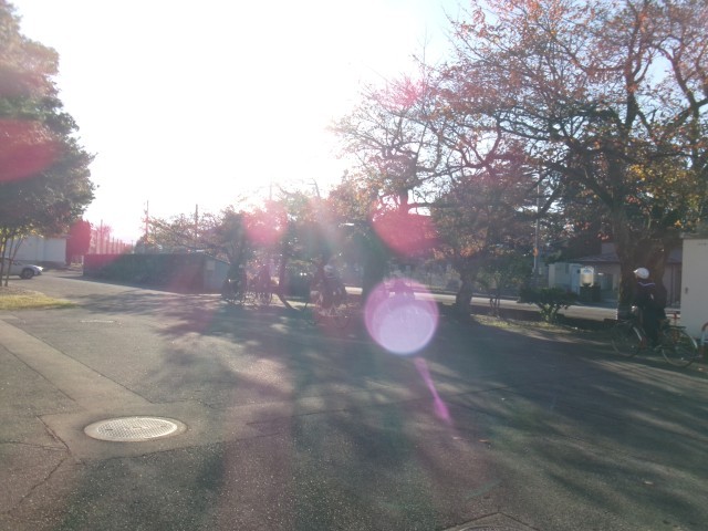 自転車通学の生徒は、向かい風の中大変だったようです。自転車小屋は日光が降り注ぎ、まぶしいです。