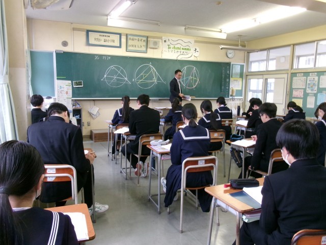 11月18日(火)授業の様子(3学年) 公開日 2025/11/18 更新日 2025/11/18 学び合い認め合う学習 数学の「円の性質」についての学習です。「円周角と弧の関係」等、性質を使って、証明する問題がありますね。一つ一つしっかり覚えておきましょう。
