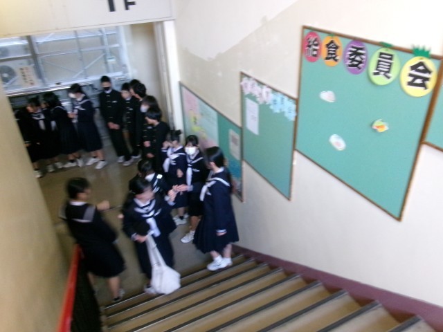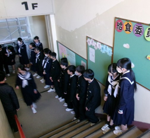 みんなで、グータッチしながら挨拶を交わしています。元気いっぱいの月中生です。