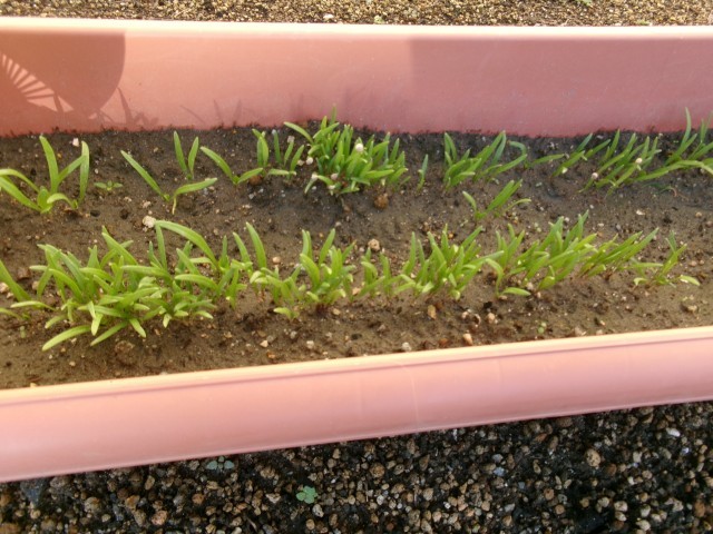 大根の本葉(ぎざぎざの葉)が出てきました!ホウレンソウや小松菜も生長しています。