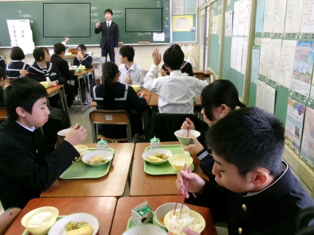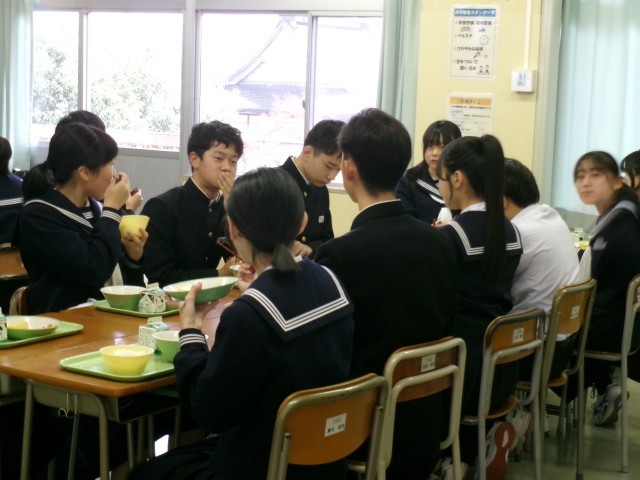 給食時間の様子です。テストが終了して、ほっとした人も多いのではないでしょうか。頭を使った分、モリモリ食べてください!