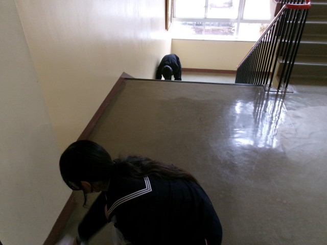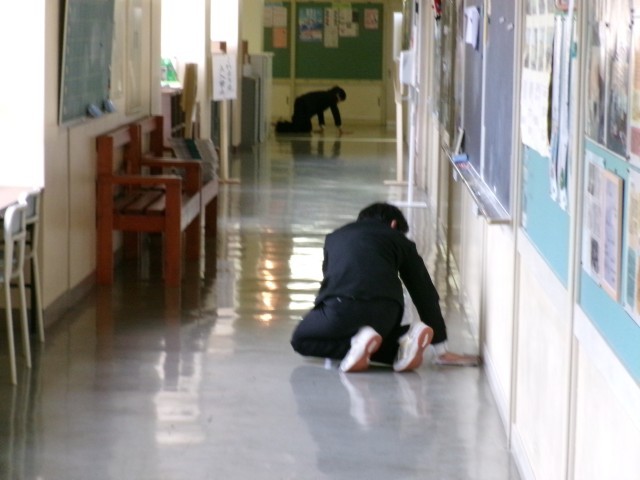 一人一人が役割以上に清掃しています。この「黙働気付き清掃」は、月岡中学校のよい伝統で、ずっと続けたい活動のひとつです。