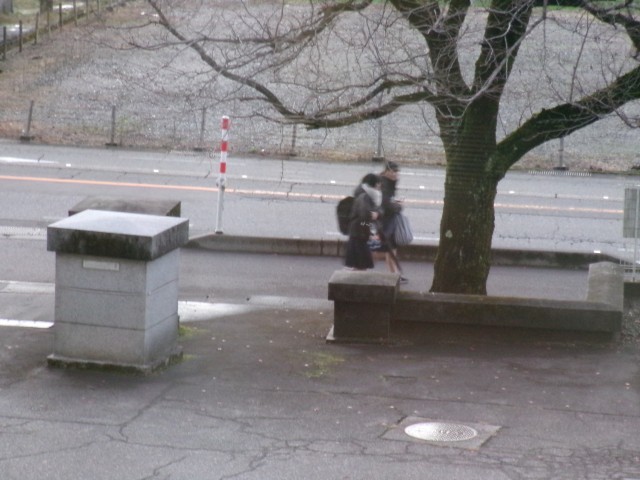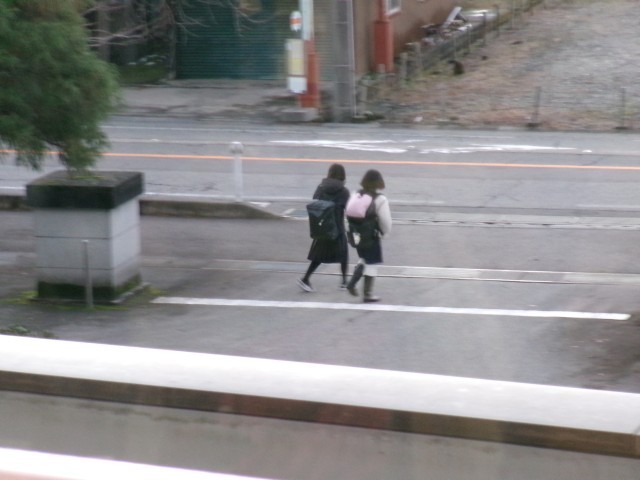 部活動を終え、下校する様子です。アスファルト上の雪は、なくなりました。明日の予報は、雨です。
