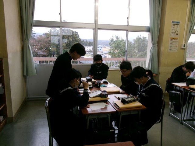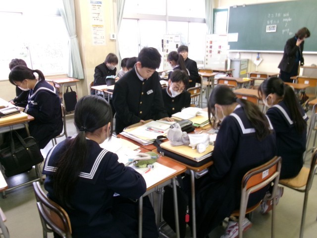 12月22日(月)授業の様子(1学年) 公開日 2025/12/22 更新日 2025/12/22 学び合い認め合う学習 英語の授業の様子です。順番に読む練習をしていました。声に出すと、覚えるやすくなることもあるので、家庭学習にもいかしてほしいと思います。