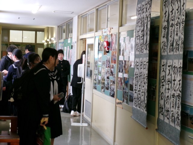 足元を気にしながらも元気に生徒が登校してきました。教室前や職員室前では、書き初め大会結果に喜ぶ人、感心する人、悔しがる人・・・がいました。