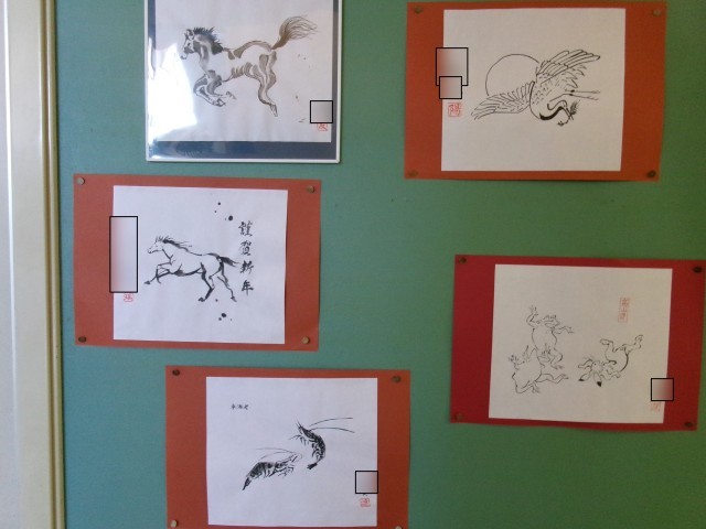 さて、11日は鏡びらき(15日の地方もあり)です。お供えしていた鏡餅をおろし、割って食べるとよいそうです。そして、12日は成人の日です。18歳で成人ということは、3年生は、中学校を卒業して3年目で成人の仲間入りです。3枚目の写真は、そんな3年生の新年にふさわしい水墨画作品です。